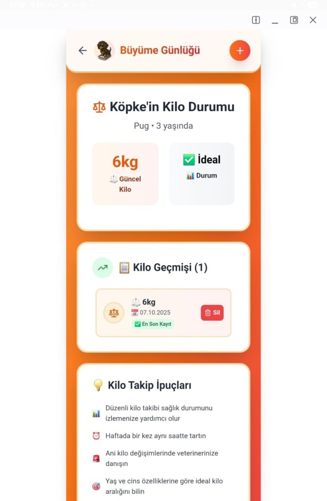 📊 Gelişim Takibi: Kilo, yaş, sağlık verilerini kolayca izle.